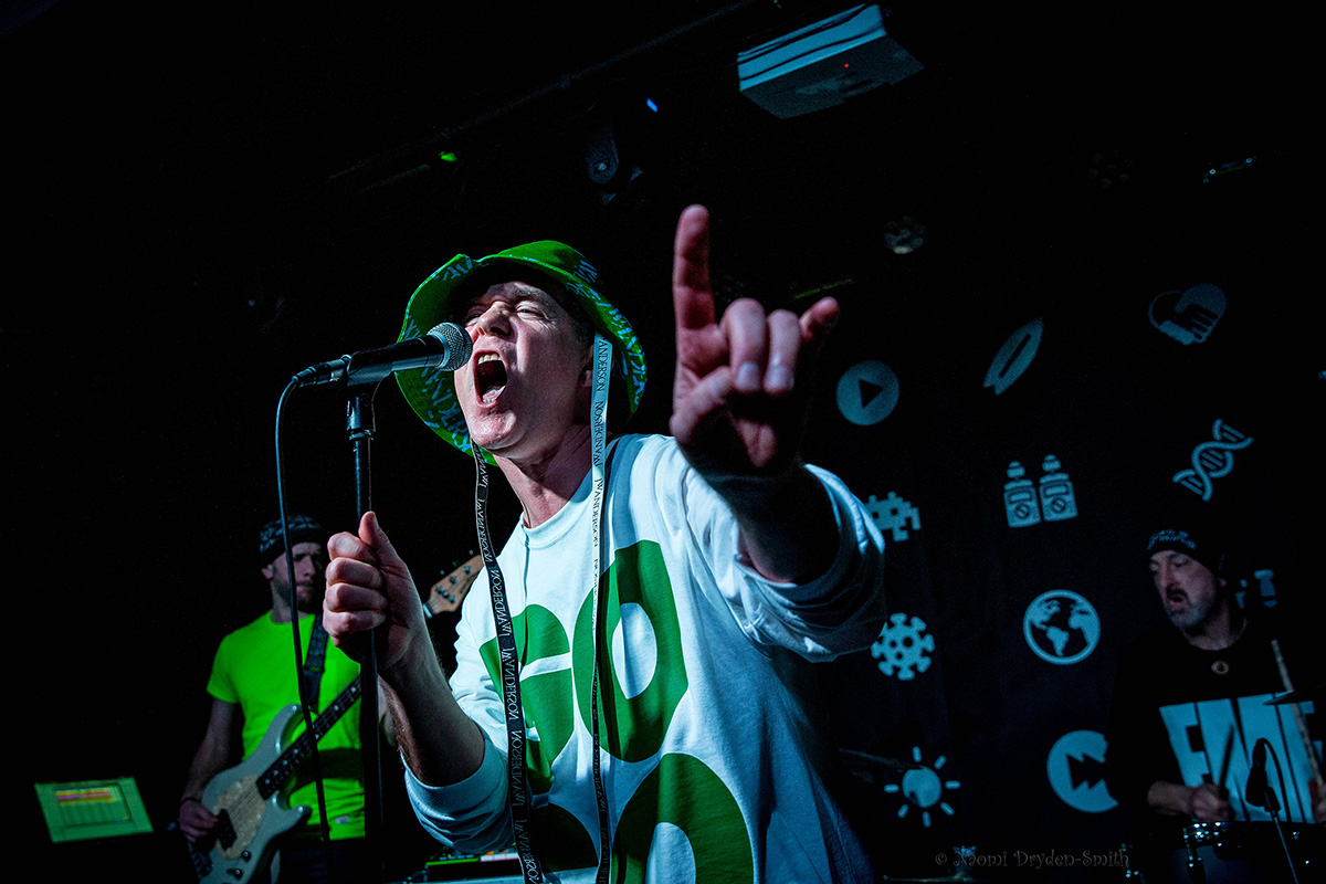 EMF have done both – hugely successfully. The trick, it turns out, is to be extremely good at what you do, for people who absolutely love what you do. First, on Go Go Sapiens the band created 11 songs as strong as those they released in the ’90s. Then they went to the effort to rehearse every single one so they all sound as good live as the hits they’ve played for decades. And now, on a Sunday night at The Water Rats, they’re playing them all in a special, intimate one-off show to fans (and the occasional journalist) as enthusiastic as the band themselves.
