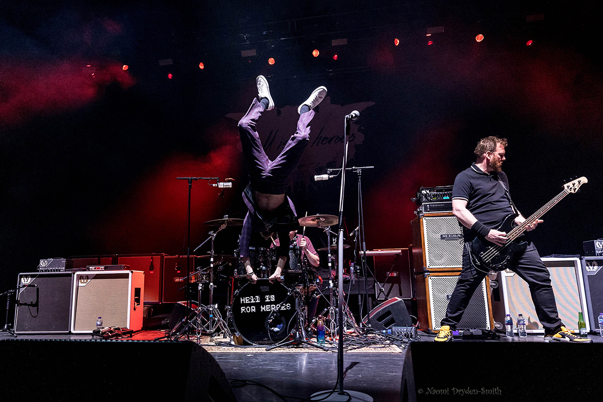 All the while Schlosberg swings his microphone like Roger Daltrey, wrestles with his mic stand like it’s possessed, and bounds across the stage in his suit (possibly the only allusion to his day job). He’s clearly making the absolute most of Hell Is For Heroes’ special guest billing on Hundred Reasons’ tour. Even when the headliners are close friends, support slots are notoriously tricky: limited stage area, limited production, limited time. But that doesn’t faze the band giving it their all for their hometown audience.